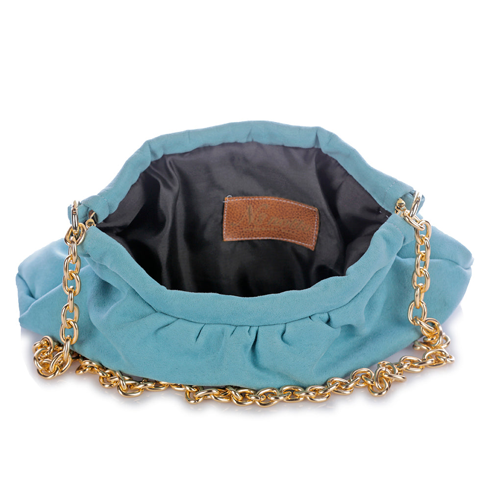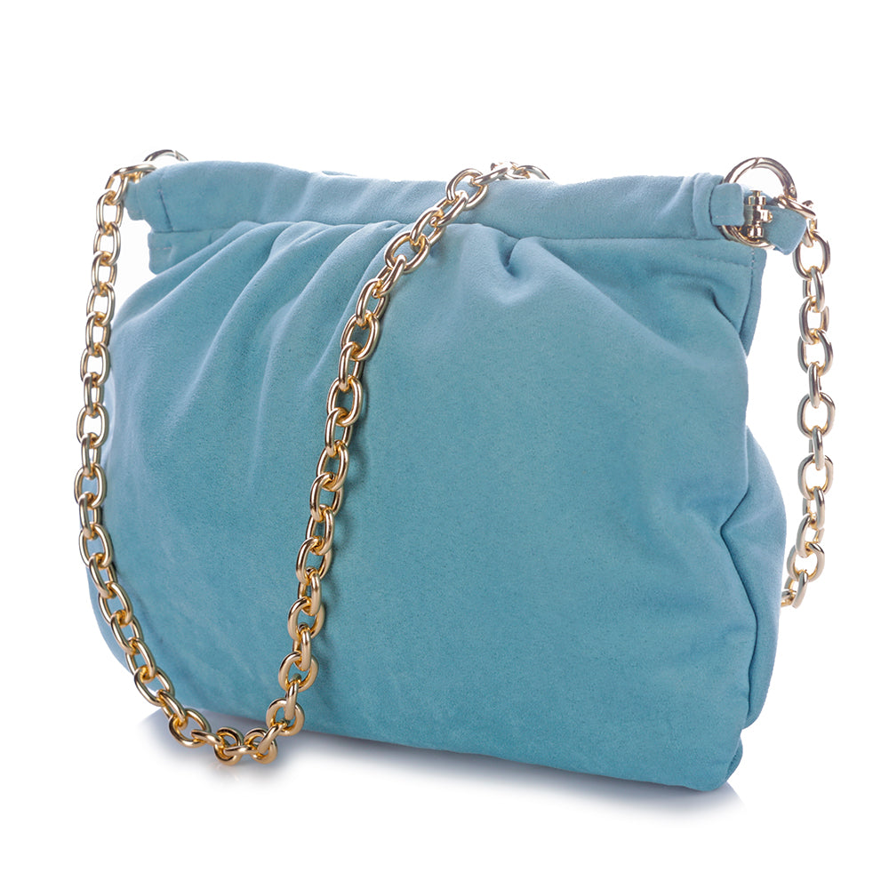 Χειροποίητη τσάντα με flex μαγνητικό κούμπωμα και μεταλλική χρυσή αλυσίδα που αφαιρείται εύκολα και μετατρέπεται σε μεγάλο φάκελο.